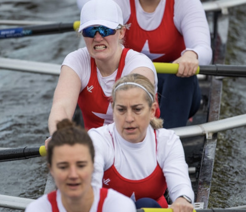 On the race course: Alix is in front of rower in white hat