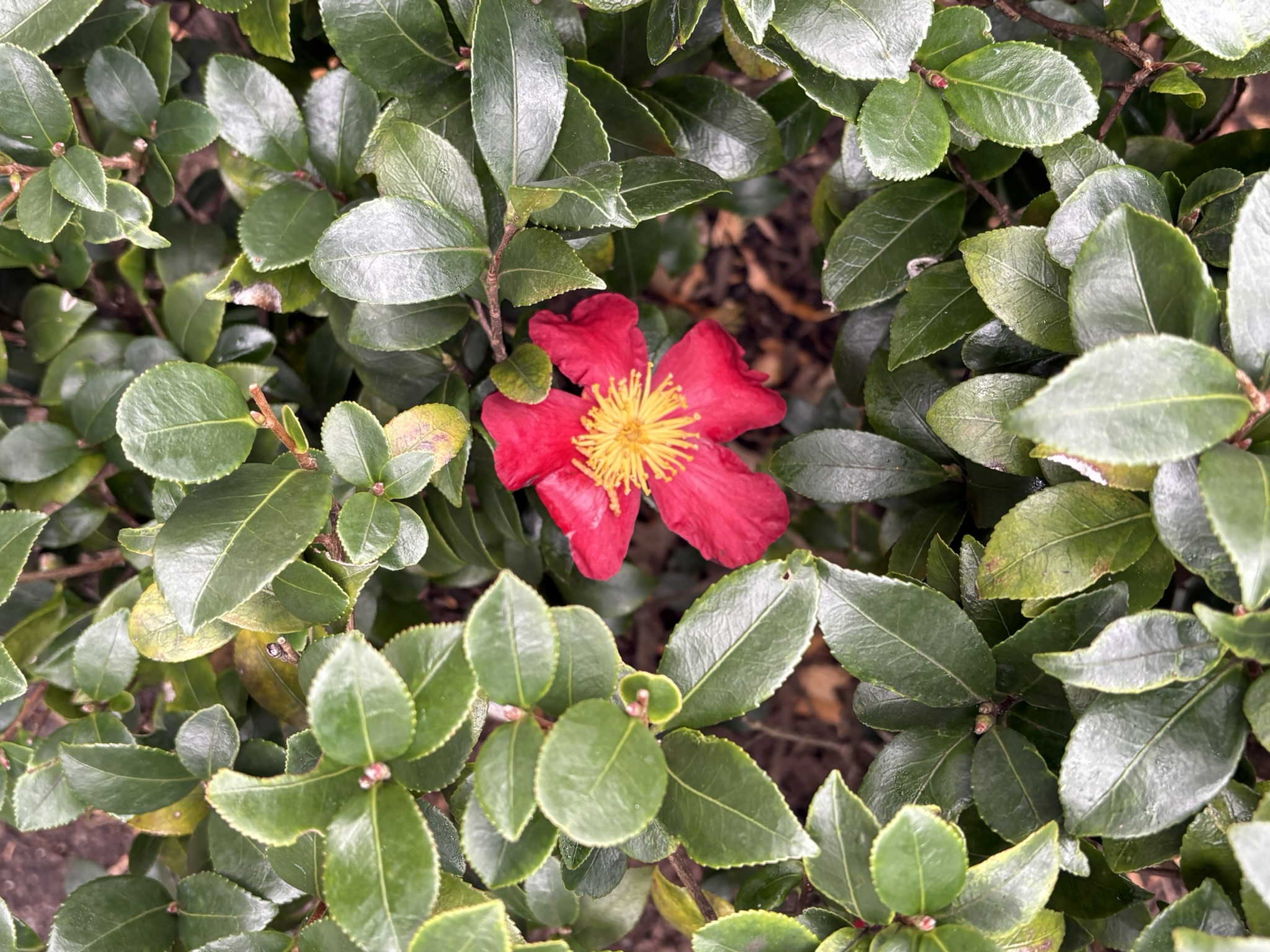 Yuletide camilia just starting to bloom